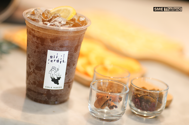 “เราชอบดื่มโคล่า ก็เลยอยากมีโคล่าเป็นของตัวเอง” เธอบอกถึงความคิดแรกเริ่ม หลังได้หนังสือที่บอกสูตรการทำคราฟท์โซดาหลากหลายสูตรมา รวมถึง Natural Cola มาอยู่ในมือจึงลองทำตาม แน่นอนว่าครั้งแรกไม่ประสบความสำเร็จจนถอดใจไปพักหนึ่ง กระทั่งเมื่อต้องคิดค้นเมนูใหม่ๆ วางขายในร้านกาแฟ Roastology นอกจากน้องๆ ที่ร้านจะคิดเมนูมานำเสนอ เจ้าของร้านอย่างกิฟก็เล่นด้วย เธอเปิดตำราที่ว่านั้นอีกครั้ง แล้วเริ่มทำโคล่ามาให้ทีมงานและลูกค้าชิม ก่อนจะทดลองขายในงาน Bangkok Design Week 2019 ผลตอบรับที่ได้ ทำให้เธอตัดสินใจสร้างแบรนด์ “aircraft” ขายคราฟท์โคล่าโดยเฉพาะ และกลายเป็น Craft Cola Maker คนแรกของเมืองไทย