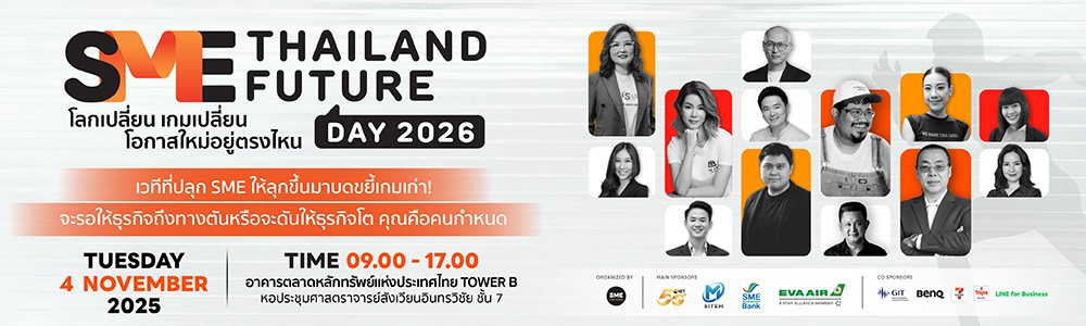 ในยุคที่โลกหมุนเร็ว การยึดติดกับการทำธุรกิจสูตรเดิมอาจไม่ช่วยให้รอดอีกต่อไป นี่คือ เหตุผลที่คุณควรมางาน SME Thailand Future Day 2026 เวทีที่จะทำให้คุณกล้าปรับเปลี่ยน และกล้าเติบโต นำไปต่อยอดธุรกิจได้จริง