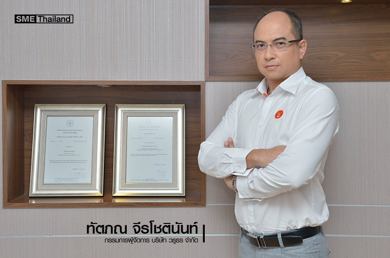 “เดิมทีเราเป็นบริษัทรับจ้างผลิตเครื่องสำอางแบบ OEM และ ODM คือ ทั้งรับจ้างผลิตตามที่ลูกค้าสั่งและออกแบบผลิตภัณฑ์ให้ด้วย เพื่อให้เจ้าของธุรกิจต่างๆ ได้นำไปทำตลาด และสร้างแบรนด์ขึ้นมาเอง โดยมีทั้งเครื่องสำอางบำรุงผิวหน้า ผิวกาย เมคอัพ ยาสีฟัน ฯลฯ ไปจนถึงผลิตภัณฑ์ที่ใช้ในโรงแรมต่างๆ จุดเด่นของเรา คือ เป็นผลิตสินค้าที่ใช้ส่วนผสมจากธรรมชาติและออร์แกนิก ซึ่งจากเดิมเรามีรายได้อยู่ที่ปีละ 10-20 ล้านบาท แต่เมื่อได้เข้าร่วมโครงการกับกสอ.(กรมส่งเสริมอุตสาหกรรม) เขามีการสนับสนุนให้สร้างแบรนด์สินค้าของตัวเอง เราจึงได้เริ่มมองหาสิ่งที่เราถนัด และอยากทำ จนมาสรุปที่เครื่องสำอางจากข้าวหอมมะลิแดง หรือ ข้าวมันปู ซึ่งมีสารต้านอนุมูลอิสระมากกว่าข้าวทั่วไป 31 เท่า และเราหาอะไรที่สื่อถึงความเป็นไทยด้วย ซึ่งข้าวก็คือ อาหารหลักของคนไทย โดยเราสามารถสกัดสารจากแคลลัสที่ได้มาจากการเพาะเลี้ยงเนื้อเยื่อจากจมูกข้าวหอมมะลิแดง หรือเรียกว่า สเต็มเซลล์ มีคุณสมบัติพิเศษเป็นโปรตีนธรรมชาติ ช่วยกระตุ้นการเจริญเติบโตของเซลล์ผิวหนังและต่อต้านชะลอความชราในผิว ซึ่งในตลาดโลกยังไม่ค่อยมีใครนำจุดนี้มาเป็นจุดขาย จนสามารถสร้างรายได้เพิ่มขึ้นกว่า 40 – 50 ล้านบาทต่อปี ถือเป็นการเติบโตแบบก้าวกระโดดมาก การที่เรามีทั้ง OEM และ Branding ด้วย ทำให้วันหนึ่งถ้าเกิดอะไรขึ้นมากับขาข้างหนึ่ง เราก็ยังเหลืออีกขาหนึ่งให้อยู่ได้”