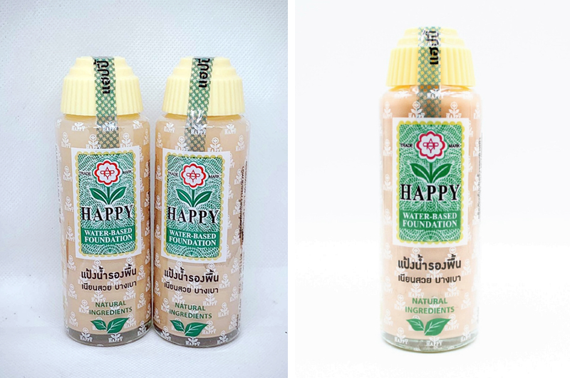 - “แป้งน้ำ Happy” แบรนด์เล็กๆ แบรนด์หนึ่งที่ถือกำเนิดขึ้นเมื่อ 60 กว่าปีก่อน จากการเป็นแป้งน้ำรองพื้นแรกๆ ของหญิงไทย
