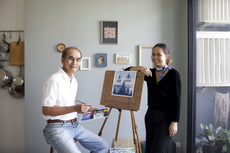 “ตอนนั้นเราทำงานโฆษณาอยู่ พ่อเข้ามาถามว่า มีงานให้พ่อทำบ้างไหม เพราะเห็นเราจ้างเด็กๆ วาดรูป แต่ในใจเราคิดว่าพ่อคงไม่ทันรุ่นเด็กๆ หรอก” อดีตโปรดิวเซอร์โฆษณาอย่างณภัทร เล่าถึงความคิดเดิมที่เคยมีช่องว่างระหว่างวัยเป็นตัวกั้น จนกระทั่งยังคงเห็นพ่อตั้งอกตั้งใจวาดรูปต่อไปเรื่อยๆ Passion ในการทำงานศิลปะของพ่อ ทำให้เขาเกิดความคิดอยากนำผลงานของพ่อมาทำให้มีคุณค่าและสร้างความภาคภูมิใจอีกครั้ง โปรเจกต์เล็กๆ ในครอบครัวจึงเริ่มต้นขึ้นจากการออกแบบผ้าพันคอขาย ด้วยทุนตั้งต้นหลักหมื่น มีช่องทางการทำตลาดผ่านออนไลน์และออกบู๊ธตามที่ต่างๆ