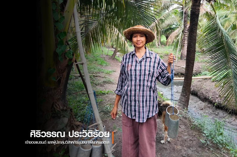 ศิริวรรณ ประวัติร้อย ชาวสวนเจ้าของแบรนด์ และผู้นำกลุ่มวิสาหกิจชุมชน เพียรหยดตาล เล่าว่าทุกวันนี้เหลือชาวสวนตัวจริงที่ทำหน้าที่ขึ้นตาลและผลิตน้ำตาลมะพร้าวแท้อยู่น้อยมาก เนื่องจากส่วนใหญ่เริ่มมีอายุมากขึ้น และไม่มีลูกหลานมาสานต่อ จึงทำให้ปริมาณน้ำตาลมะพร้าวแท้ๆ ที่จำหน่ายอยู่ในท้องตลาดนั้นมีอยู่น้อยมาก ส่วนใหญ่ที่ขายกันอยู่ทั่วไปจะเป็นน้ำตาลผสม ซึ่งบางส่วนก็มีการใช้สารเคมีทั้งในการเพาะปลูก สารกันบูด และในขั้นตอนการผลิตด้วย จึงทำให้ผู้บริโภคแทบจะไม่ค่อยได้ลิ้มรสชาติและได้รู้จักน้ำตาลมะพร้าวแท้ๆ สักเท่าไหร่