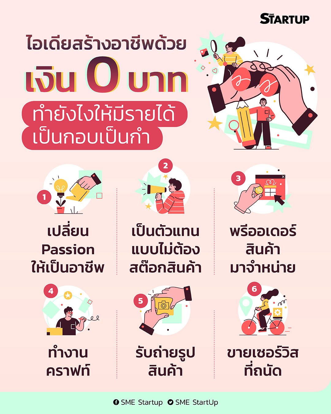 เมื่อการทำธุรกิจยุคใหม่ไม่ได้เริ่มต้นยากเหมือนในสมัยก่อน บางทีแค่มีอินเตอร์เน็ต มีไอเดีย ก็สามารถเปลี่ยนเป็นรายได้ให้คุณได้แล้ว นอกจากนี้ยังมีโอกาสมากมายที่ลอยอยู่บนโอกาสให้คุณได้เข้าไปคว้ามา และนี่คือไอเดียสร้างอาชีพด้วยเงิน 0 บาท
