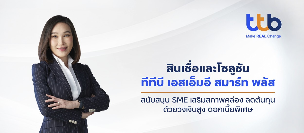 ทีทีบี ตอกย้ำบทบาทพันธมิตรทางธุรกิจของผู้ประกอบการ SME เดินหน้าสนับสนุนสินเชื่อและโซลูชัน “ทีทีบี เอสเอ็มอี สมาร์ท พลัส” ช่วยเสริมสภาพคล่อง ลดต้นทุนทางการเงิน ด้วยวงเงินสูงสุดถึง 333% ของมูลค่าหลักประกัน